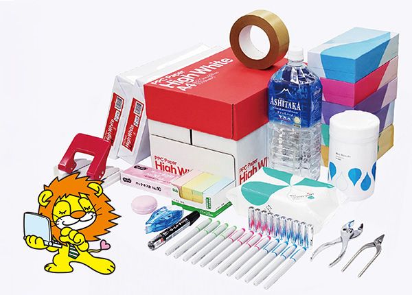 全国の販売店の顧客・法⼈等に向け、⽂具・事務⽤品、オフィス家具、消耗品等、約45万点をオンラインにて販売