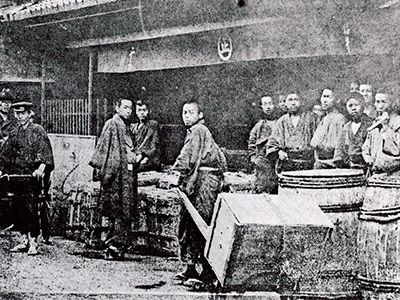 江⼾時代後期にあたる寛政4年、初代今津屋⼩⼋郎(福井家祖)が今津屋の屋号のもとに⼤阪⼼斎橋筋平野町で筆墨商として創業