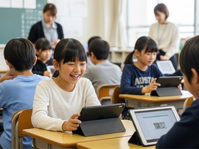自治体や教育委員会を通じて、主に公立小中学校向けにICT機器(電子黒板・プロジェクタなど)や保守サービスを提供