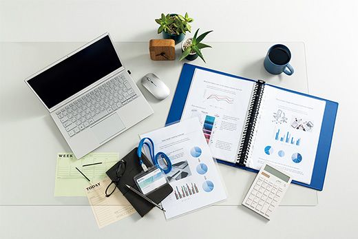 ⼤⼿パートナーとの協業や直販、海外市場、介護・福祉施設を対象に⽂具・事務⽤品、オフィス家具、事務機器等を販売
