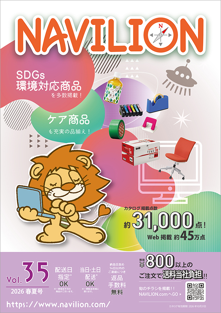 株式会社ライオン事務器(東京都中野区、代表取締役社長:髙橋俊泰)は、ライオン事務器の通販「ナビリオン(NAVILION)」の最新刊「ナビリオン・カタログ Vol.35」を、4月1日に発刊いたしました。