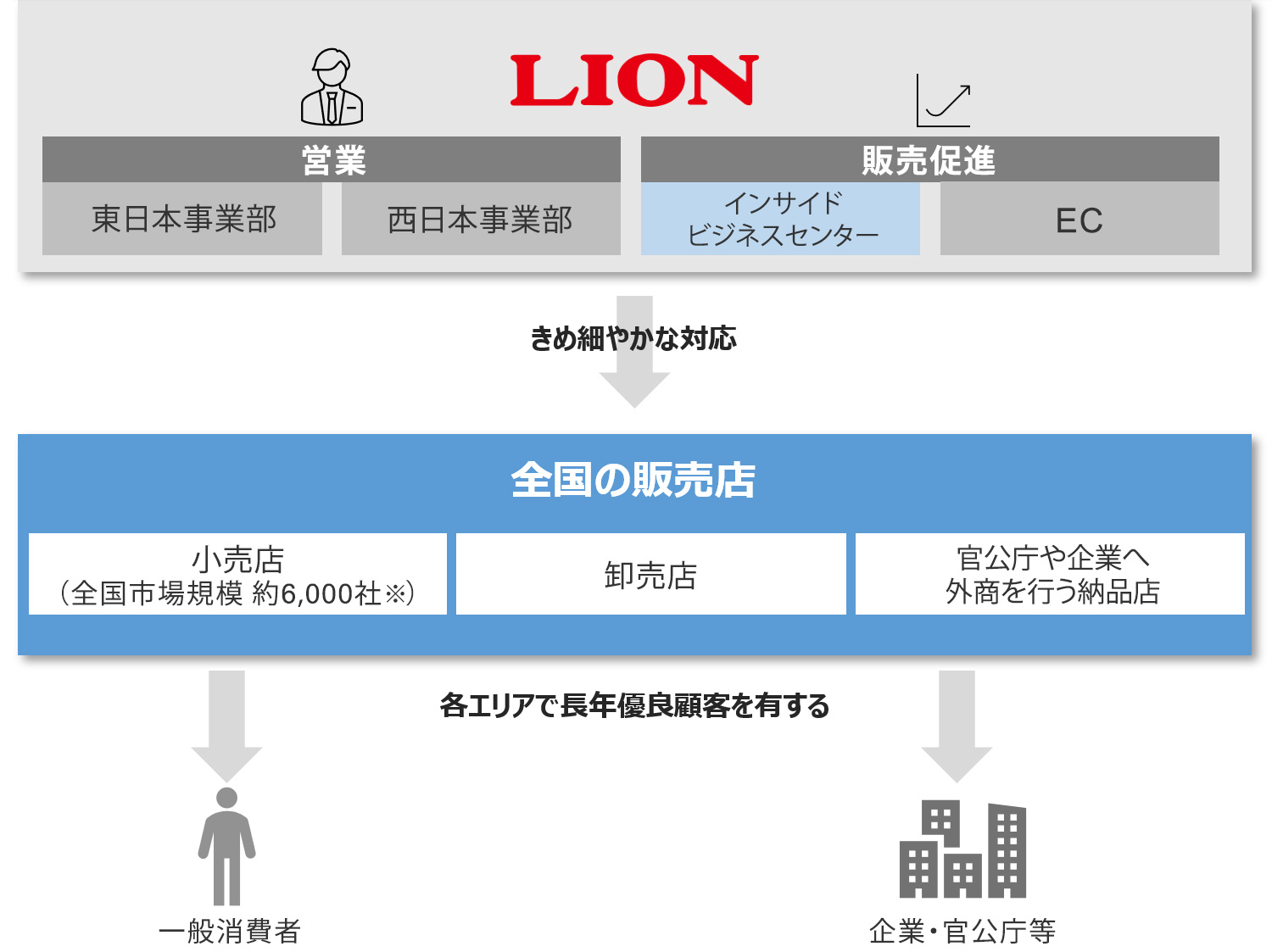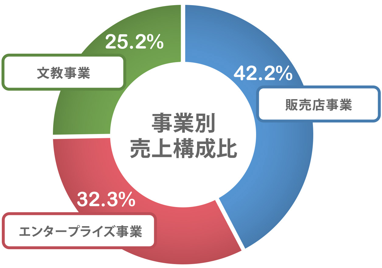 全国の文具店やオフィス用品を扱う販売店を主な取引先とし、文具・事務用品、オフィス家具、事務機器などを提供しています。また、一部では官公庁などのユーザーとも直接取引を行っています。 創業当初は文具の取り扱いが中心でしたが、時代の変化に伴いニーズが多様化し、現在ではオフィス家具や事務機器、ICT商材を含めた「オフィスまるごと提案」に取り組んでいます。メーカーと商社の両方の機能を活かし、こうした変化に柔軟に対応できる体制を整えています。