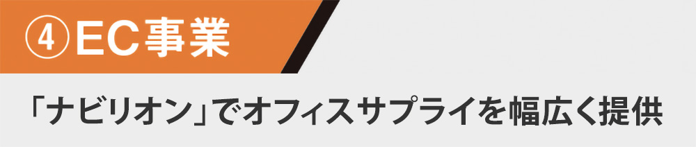 さらに、ECプラットフォーム「ナビリオン(NAVILION)」を通じて、多彩なオフィスサプライ品をオンラインで提供。営業活動と「ナビリオン」を融合させ、提案力と利便性を強化し、持続的な成長を目指しています。