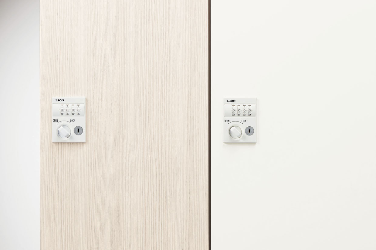 開閉表示機能付き・リバーシブルキーの内筒交換錠を採用しました。鍵の紛失時にはシリンダーの交換が容易に行えます。 (専用内筒ですので他の内筒とは交換できません)