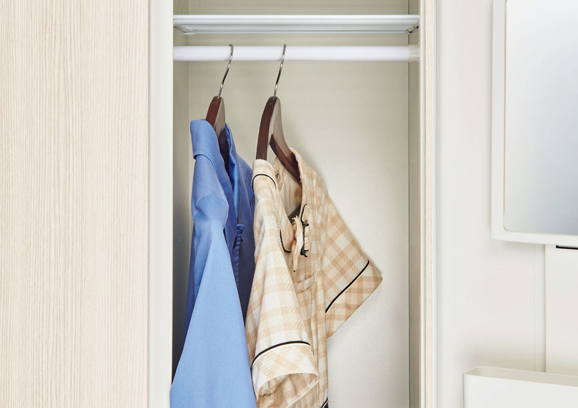 1段タイプはロングコートや制服も収容可能。2段タイプでも上着の収容ができます。