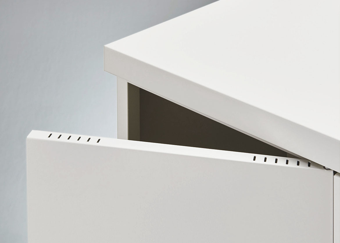 扉の上部と下部見込面にエアホールを設けました。庫内の空気を循環させてニオイのこもりを防止します。