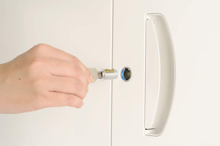 収納庫本体の変更なしに、シリンダーだけを交換できる錠前です。