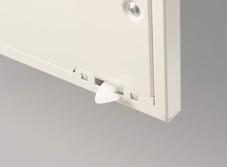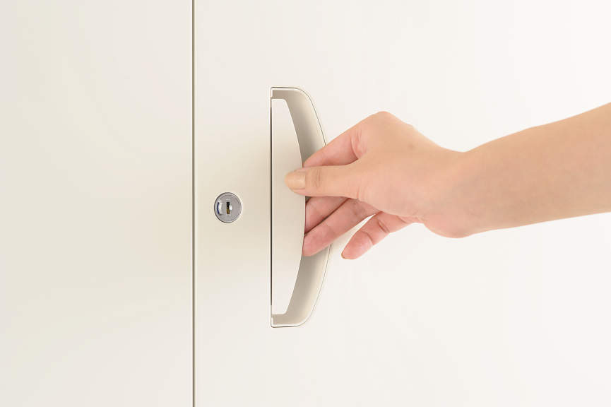 両開型・引戸型・引出し型の扉にラッチ機構を装備。収納物の不慮の飛び出しや開扉を防ぎます。