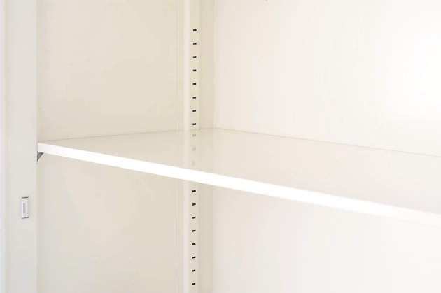 24mmピッチで可動します。また、棚板と側板の隙間から収納物が落ちない設計となっています。(棚板厚み:15mm)
