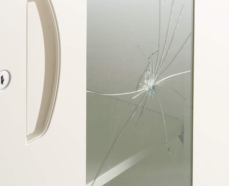 不慮の事故や地震等の際に、割れても破片が飛び散らない飛散防止フィルム加工を施しております。(ガラス両開型)