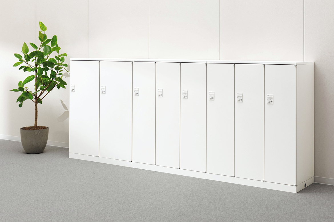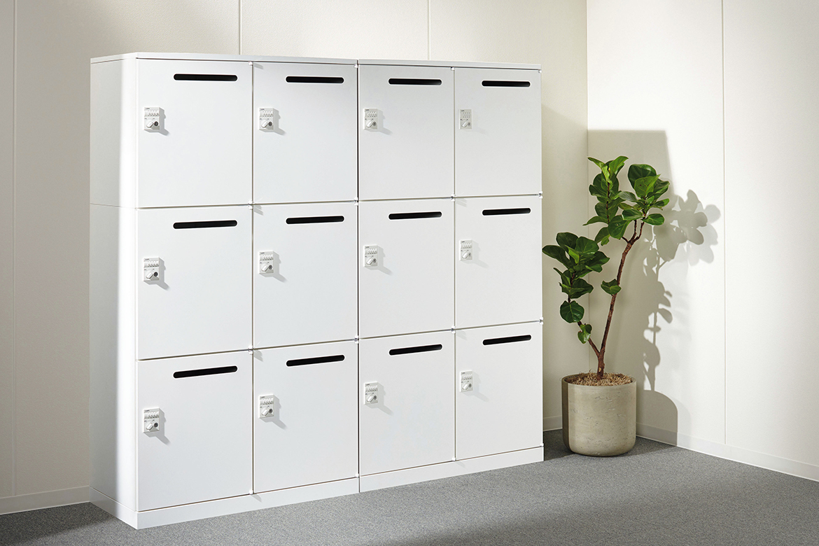 投函口から入れた郵便物を受け取るためのメールポケットが付いた、個人用のロッカー型収納庫。