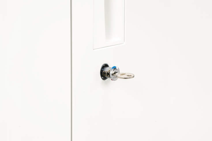 収納庫本体の変更なしに、シリンダーだけを交換し、鍵番号を変更できる錠前です。