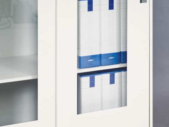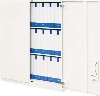 開き扉は180度開口し、通路を邪魔することなく、書類などの収納物を出し入れできます。