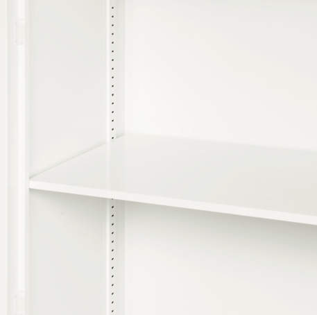 16.6mmピッチで可動し、収納物に合わせて棚板位置を設定でき、スペースを有効活用できます。(棚板厚み:13mm)