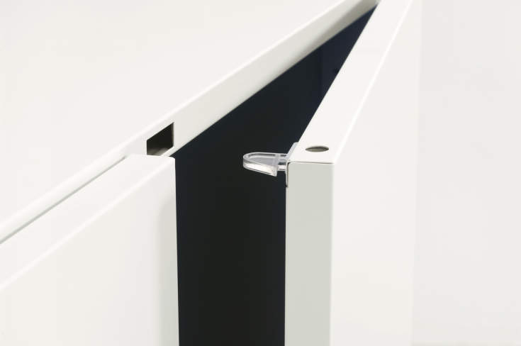 両開型・引戸型・引出し型の扉に、ラッチ機構を装備。収納物の不慮の飛び出しや開扉を防ぎます。