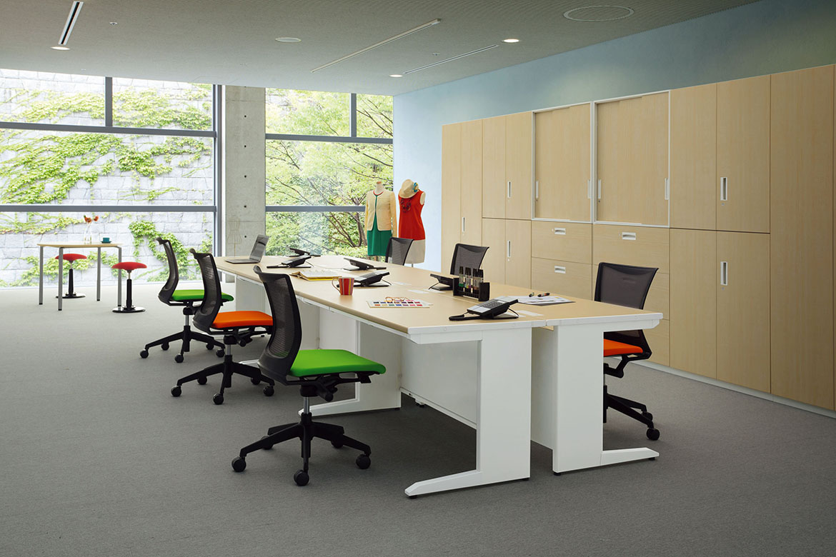 親和性の高いデスク・テーブルシリーズと組み合わせて、明るく統一感のあるオフィスをご提案します