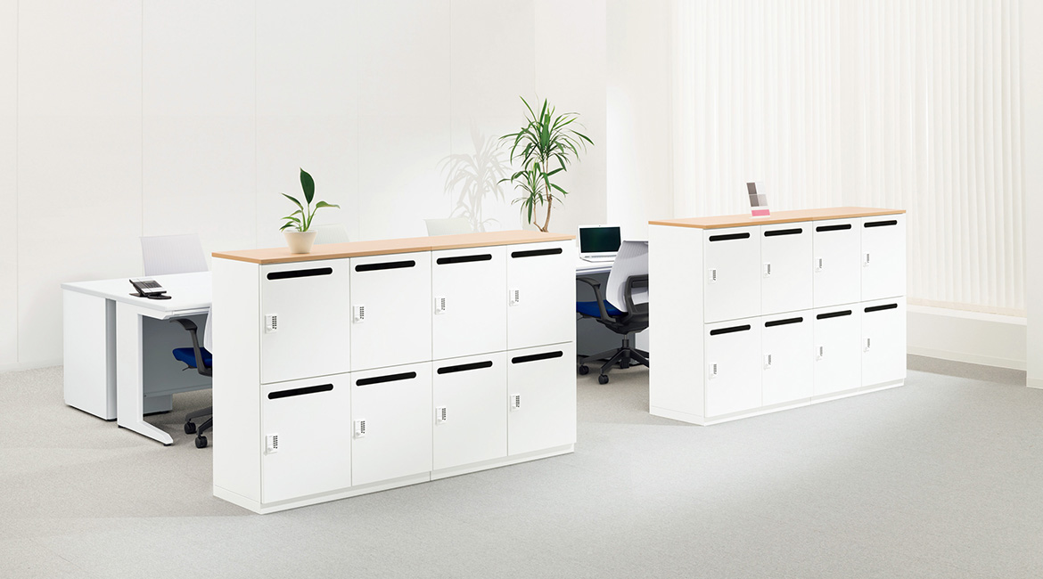 個別収納スペースを創り出すユニットです。フリーアドレスなどのワークスタイルに対応する個人収納ユニットです。