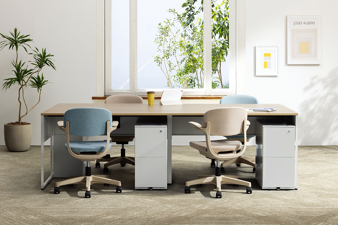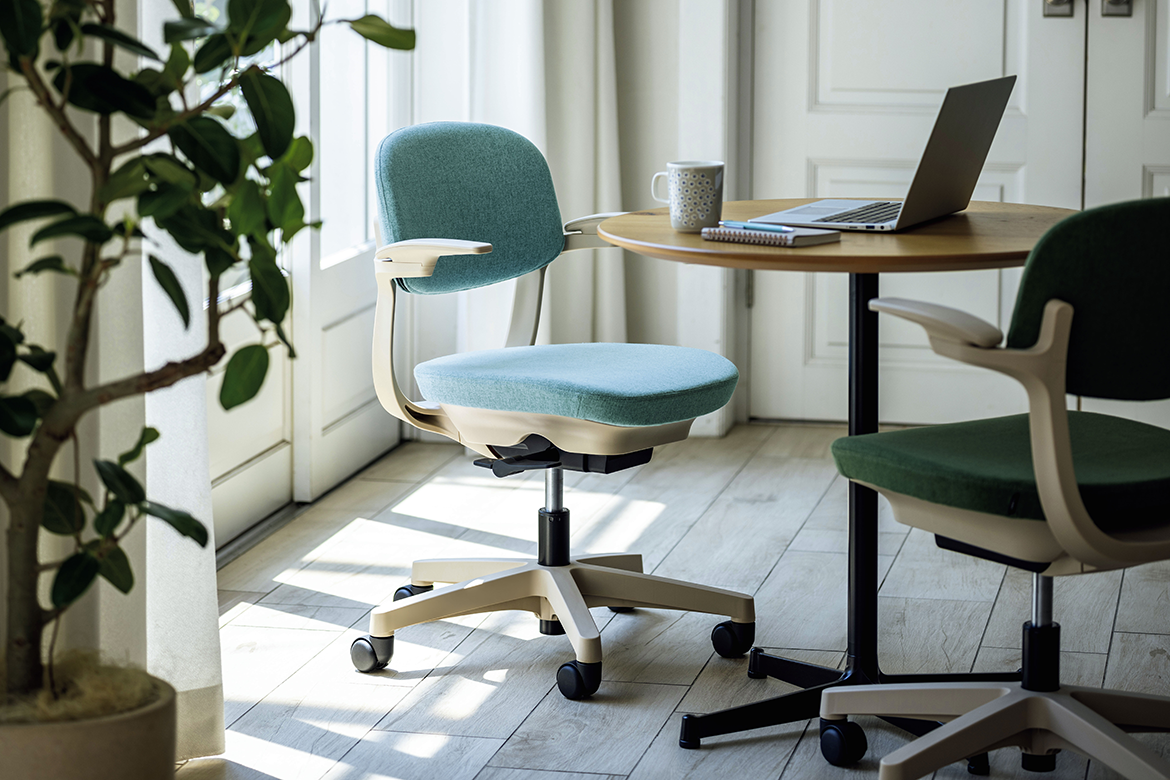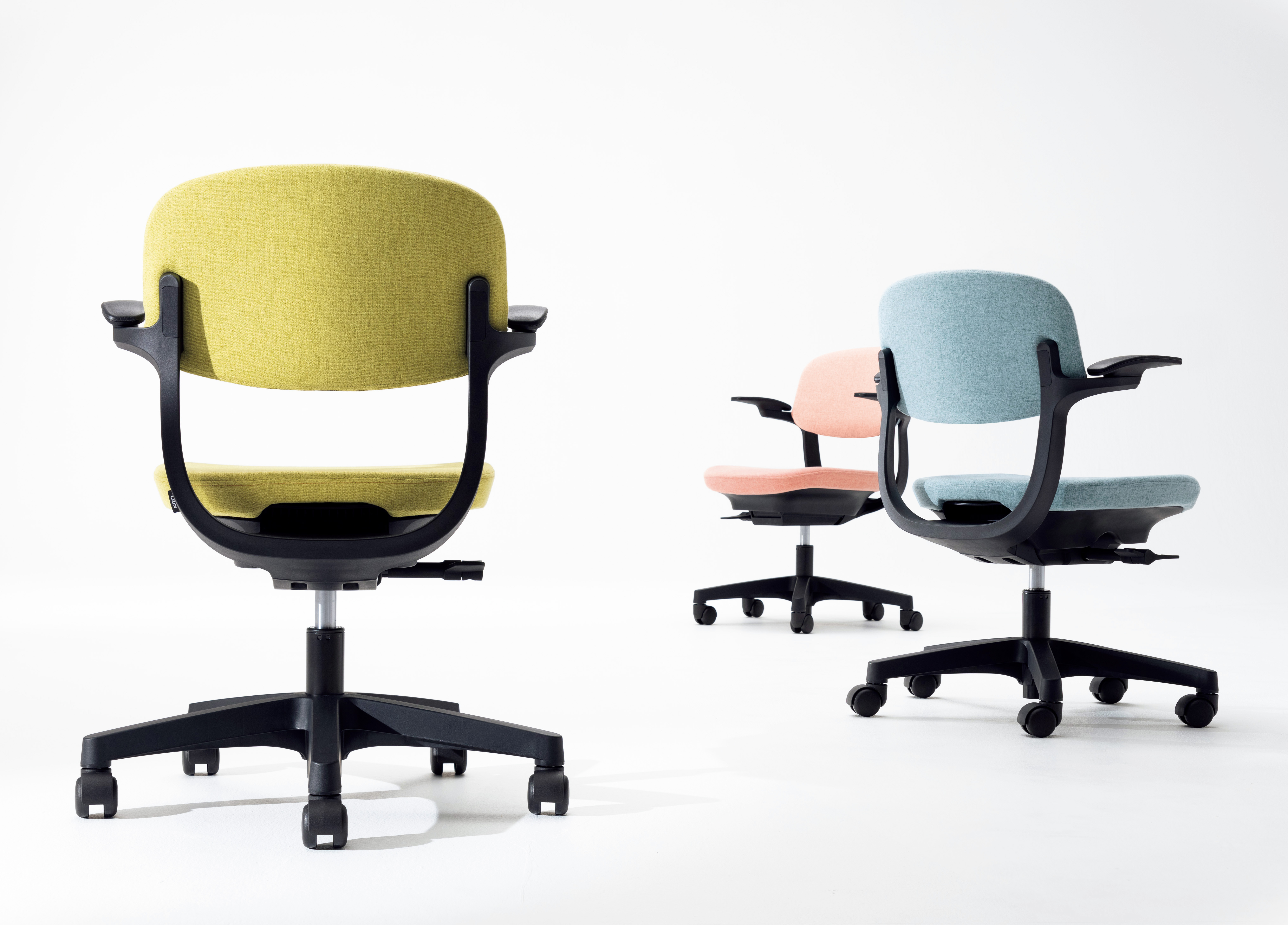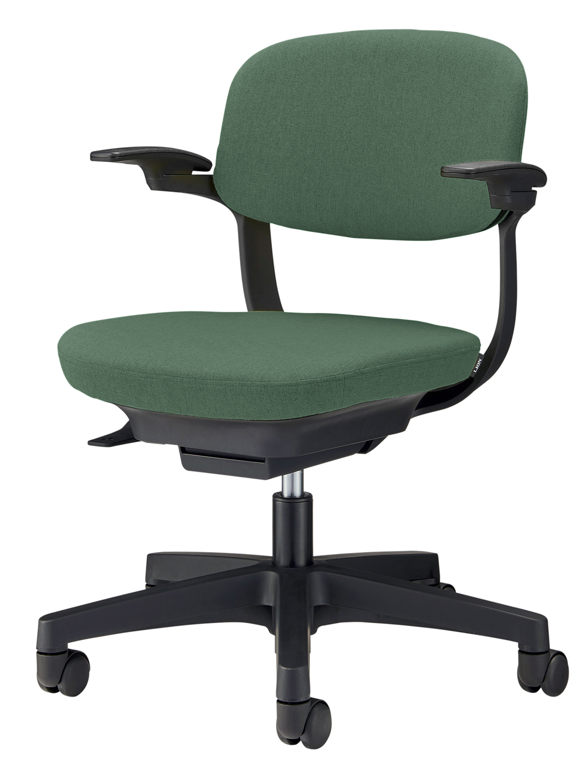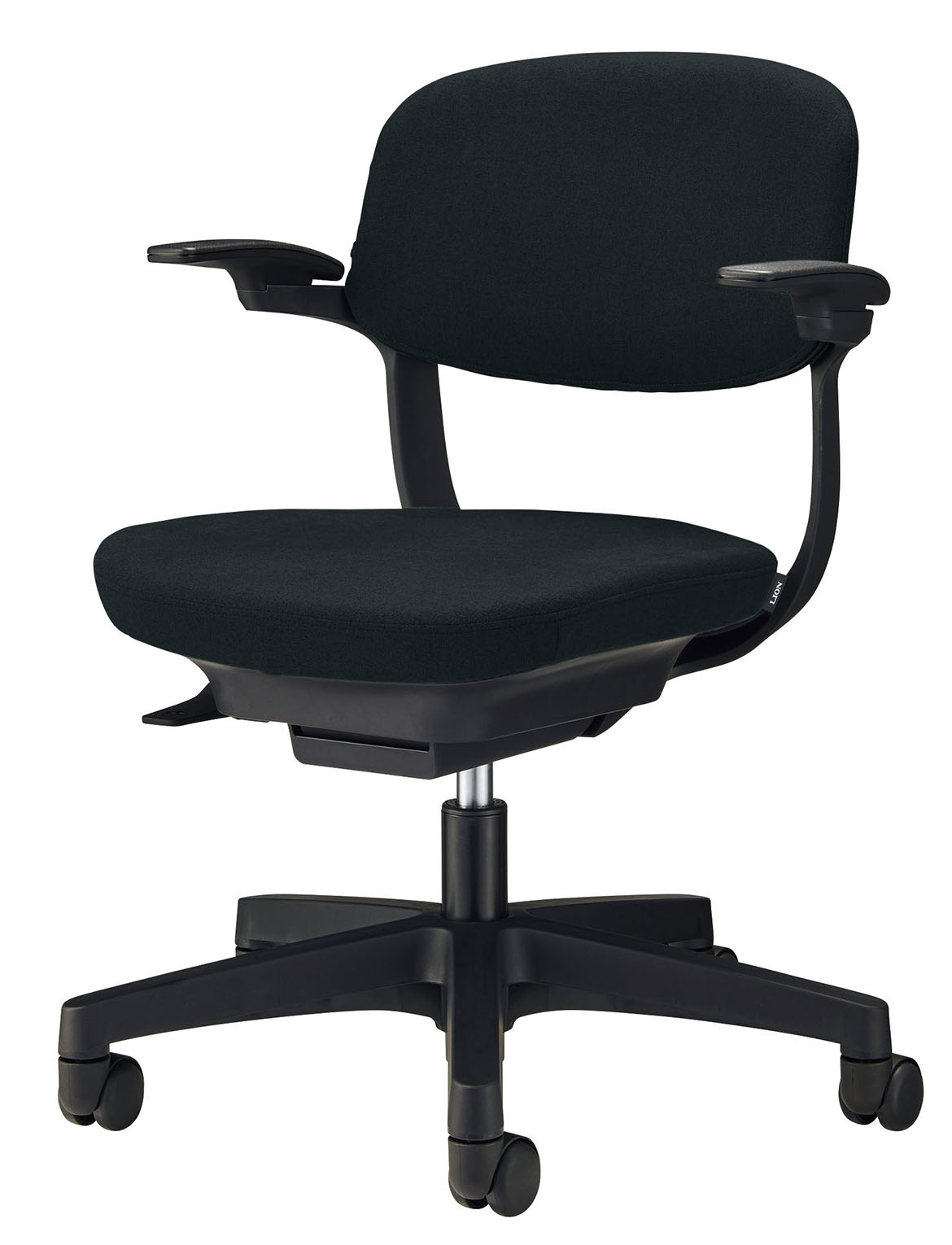 コンパクトなサイズ感で、オフィスでのソロワークやグループワークにおすすめのチェアーです。座面にかかる荷重に応じて、背もたれの反力が変化するセルフアジャストロッキング機構を採用し、様々な方に快適な座り心地を実現します。