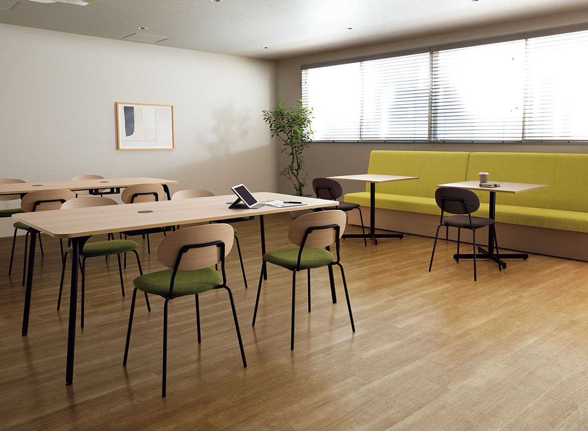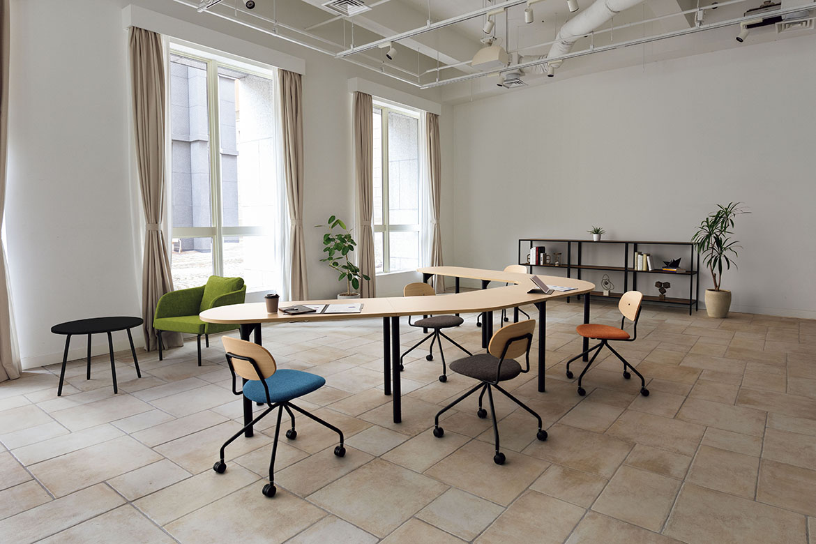 気軽に場を整えて、軽い打ち合わせやひと息つける軽やかなリフレッシュスペースに。