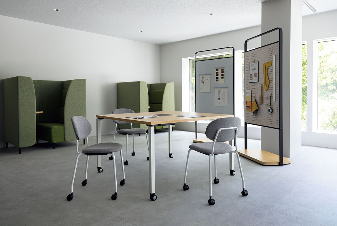 キャスター付タイプは、フレキシブルに場をつくり、チームワークをサポートします。