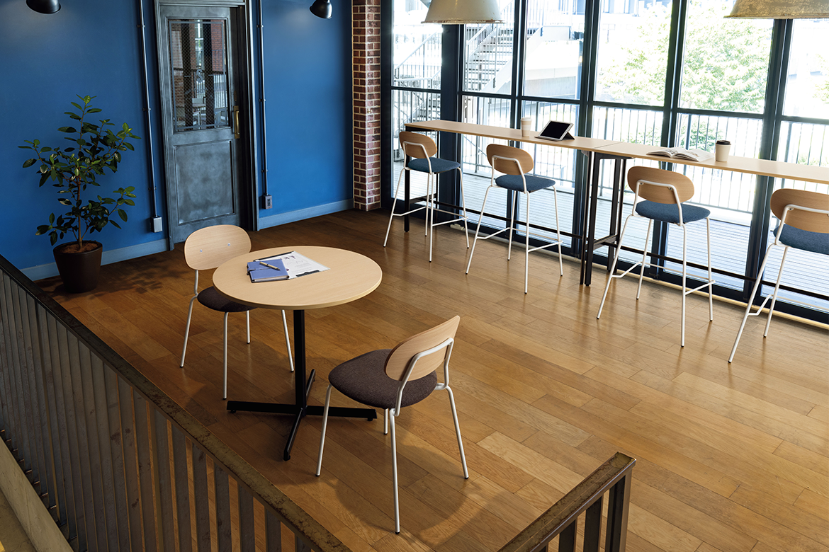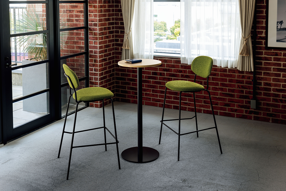 ハイチェアーとスタンダードチェアーを組み合わせて、調和のとれた心地よい空間をコーディネート。