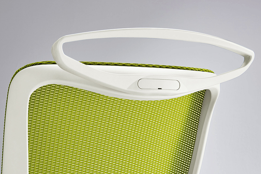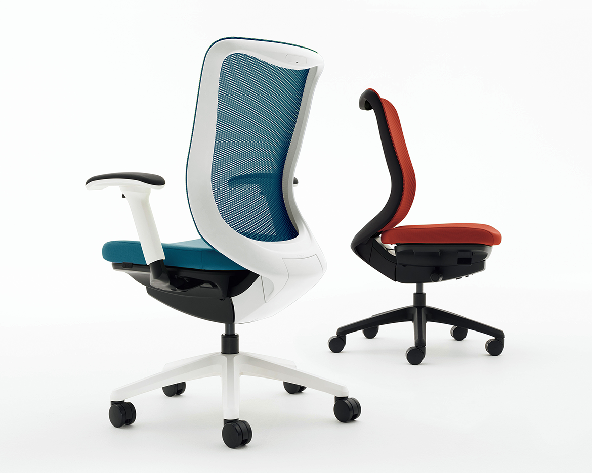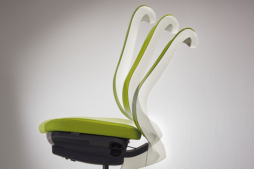 背もたれのダイナミックな縦のカーブが背骨のS字カーブをサポートし、両サイドからのゆるやかな横のカーブが背中を包み込むようにフィットします。