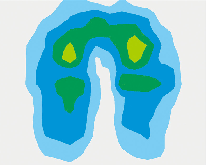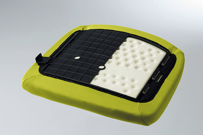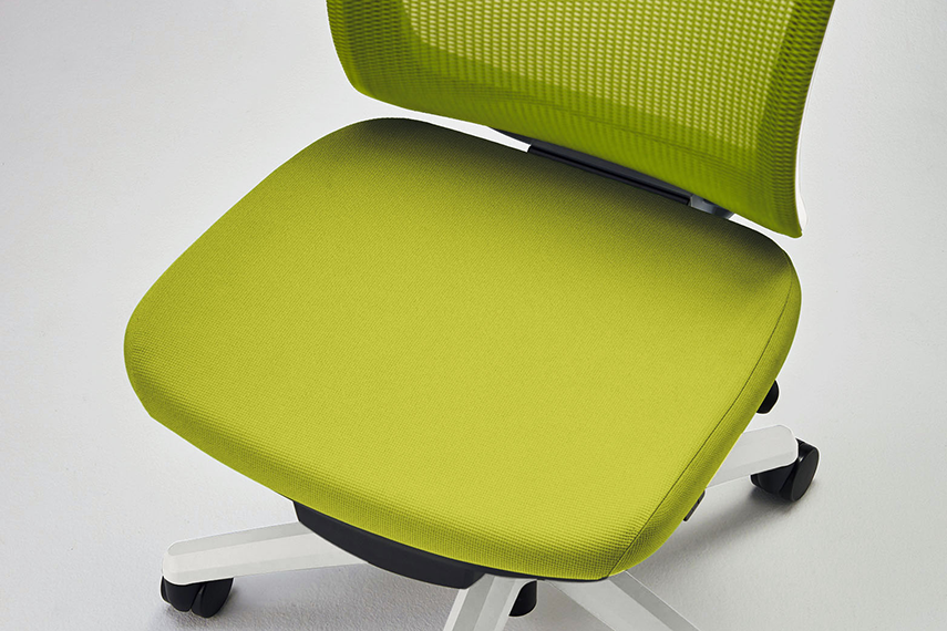 当社独自の座面クッション構造により、着座時の理想的な体圧分散を実現しました。座骨周辺や大腿部を適度に減圧することで、通常姿勢では安定した姿勢を保ち、後傾時には体重移動による臀部(でんぶ)の前すべりを防止する構造になっています。