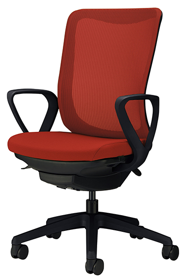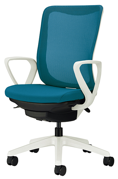 座の傾斜スライドと連動しながら背が後傾するスライド3WAYシンクロロッキング機構により、座前部の持ち上がりがなく、骨盤と大腿部の角度を最良に保つことができます。(背最大傾斜角20度)