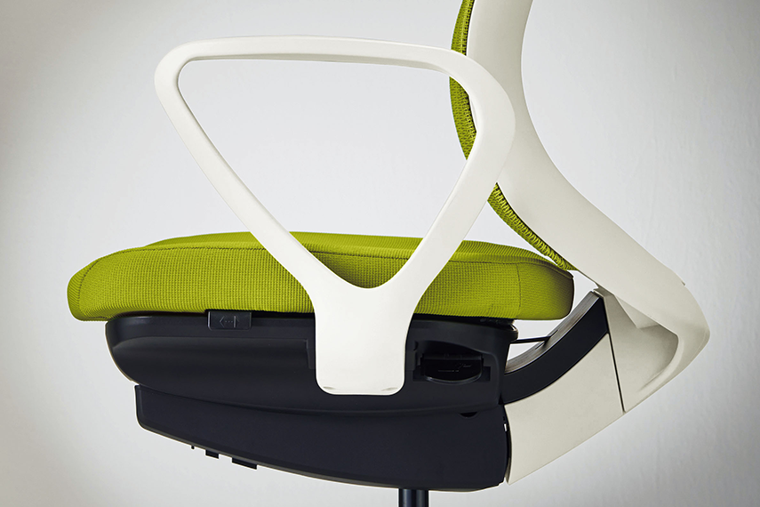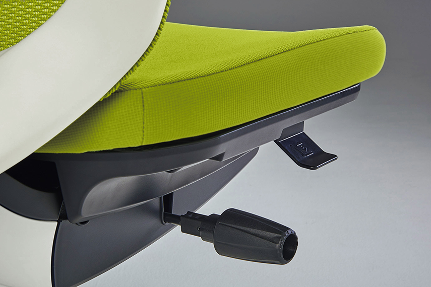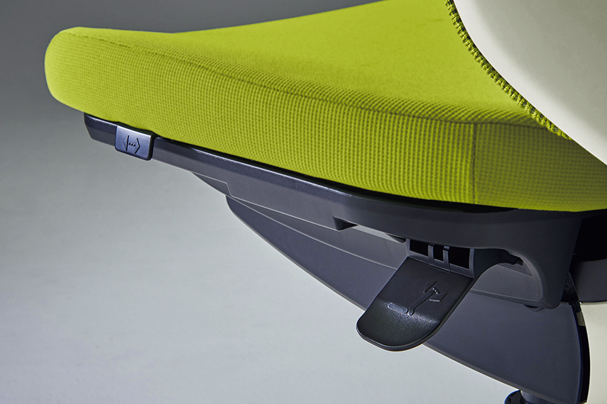 座面の奥行は前後50mm調節でき、体格に合わせて背もたれまでの距離を最適に設定できます。