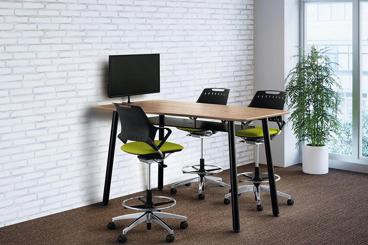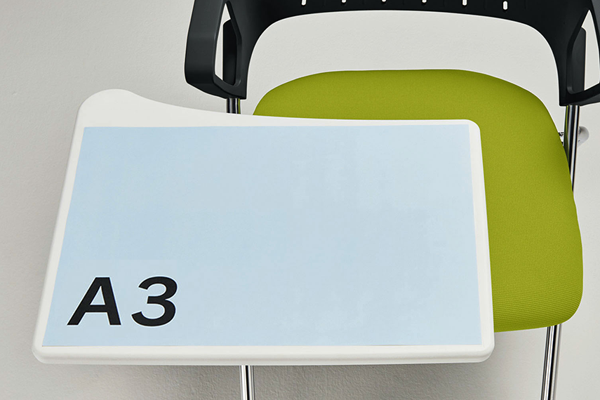 左利きの人の筆記作業にもストレスなく対応。ノートパソコンなども快適に使用できます。 (スライドスタッキングタイプ[メモ台付])