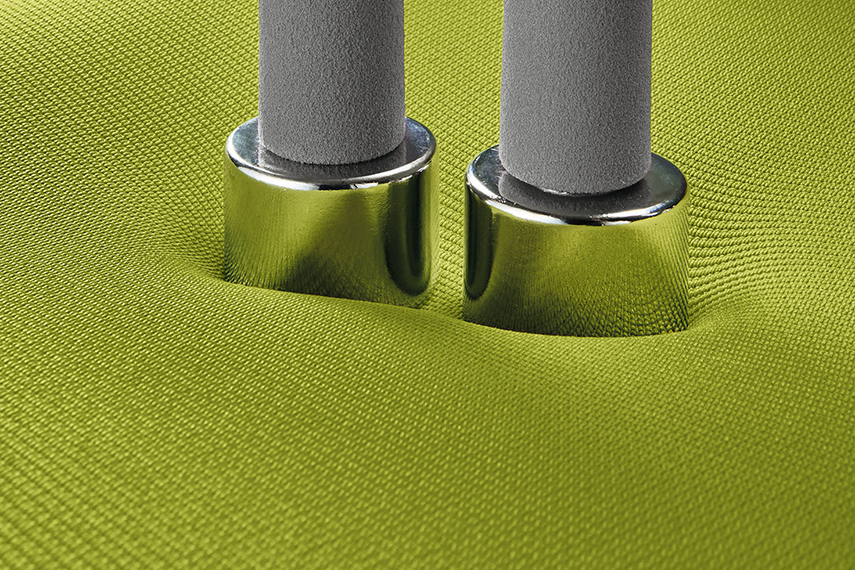 座のクッション材にダイメトロールを採用。荷重を面で支える布バネ構造により、太もも裏などの圧迫が軽減されます。
