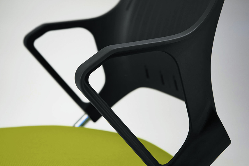 背から有機的なデザインで設けられた肘は、両腕にかかる負担を分散し、肩や腰にかかる負担も軽減します。