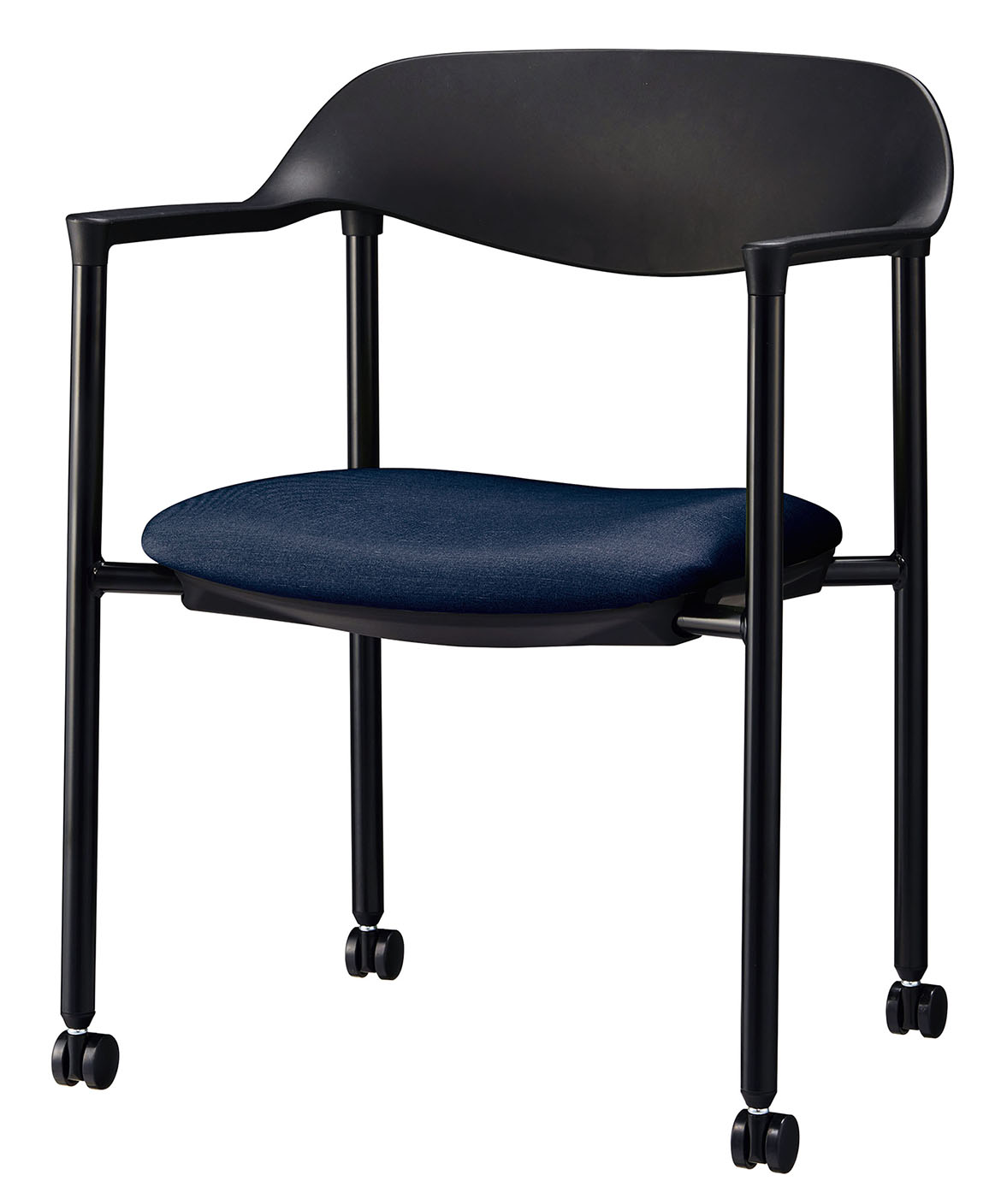 キャスター脚/レザー張り/ダークブルー