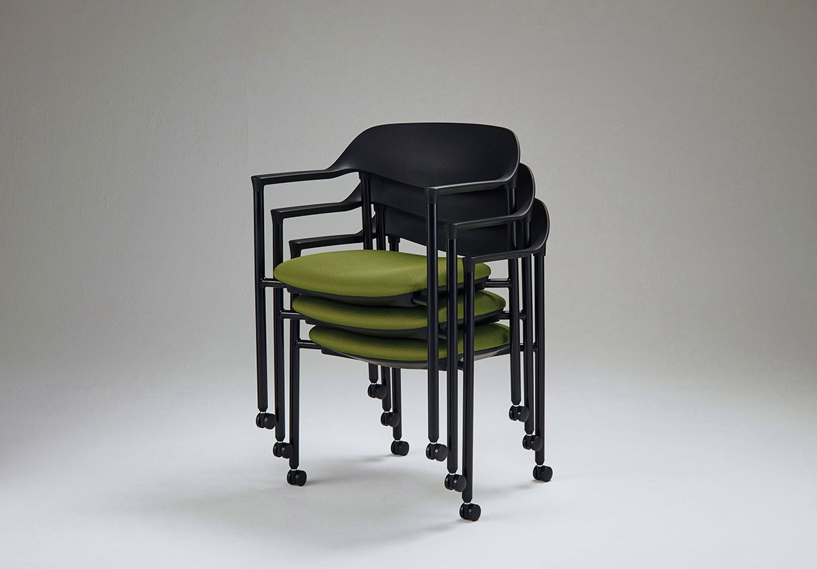 全タイプ、平積みで3脚までスタッキングが可能です。