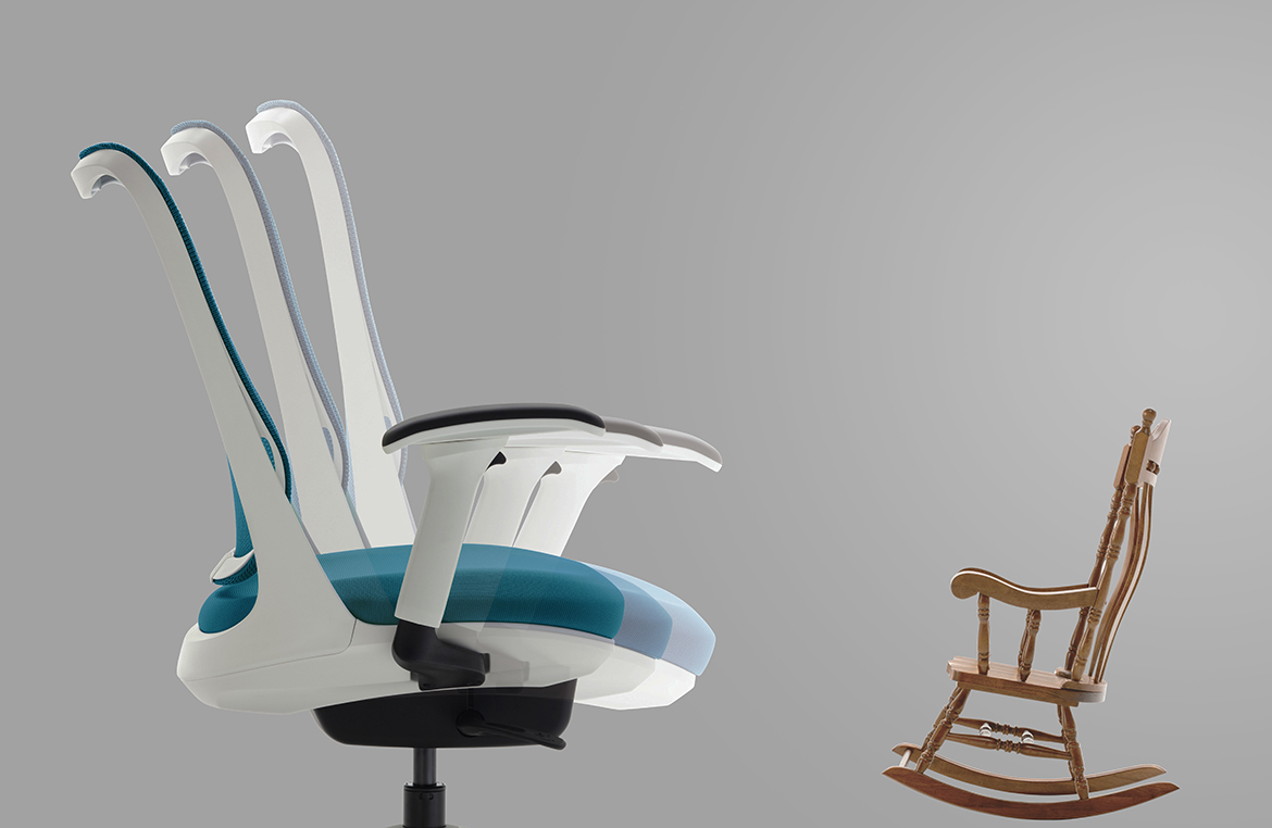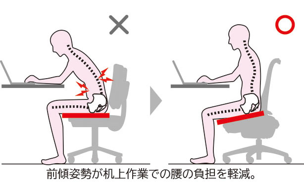 レバー操作せずに、自然な流れで姿勢の移行に応じ、前傾から後傾まで「負担の少ない正しい姿勢」をサポート。