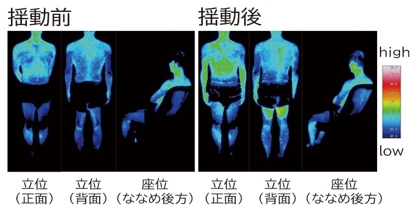 ライドで、前後の揺れ動きを繰り返すと、体表面温度がゆるやかに上昇します。血流や冷え性の改善などの効果が期待できます。