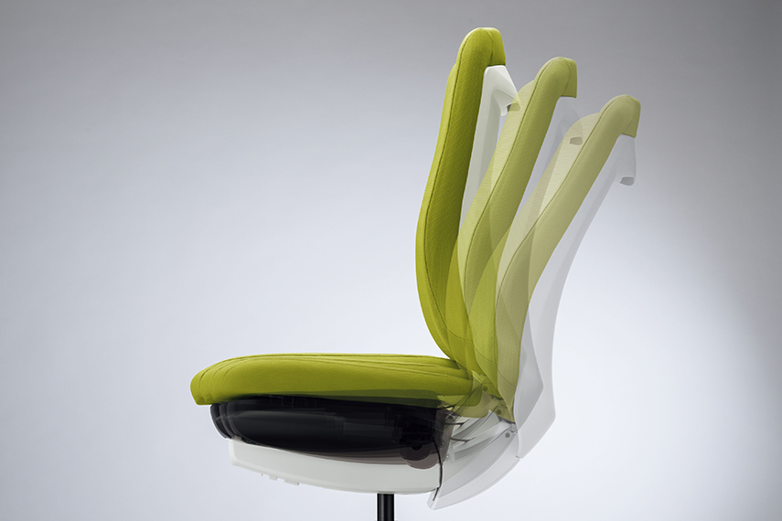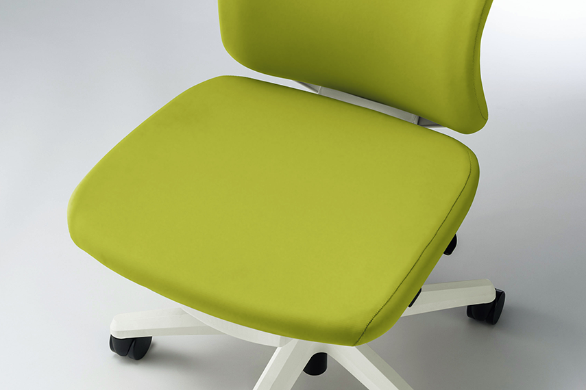 独自の座面クッション構造により、着座時の理想的な体圧分散を実現しました。 座骨周辺や大腿部を適度に減圧することで、通常姿勢では座をしっかりと支え、後傾時には体重移動による座の前すべりを防止。快適で安定した姿勢を保ちます。