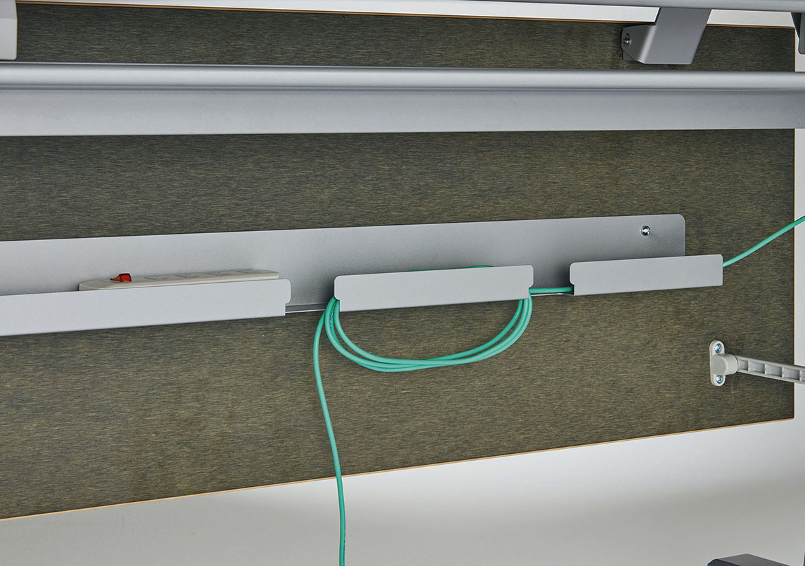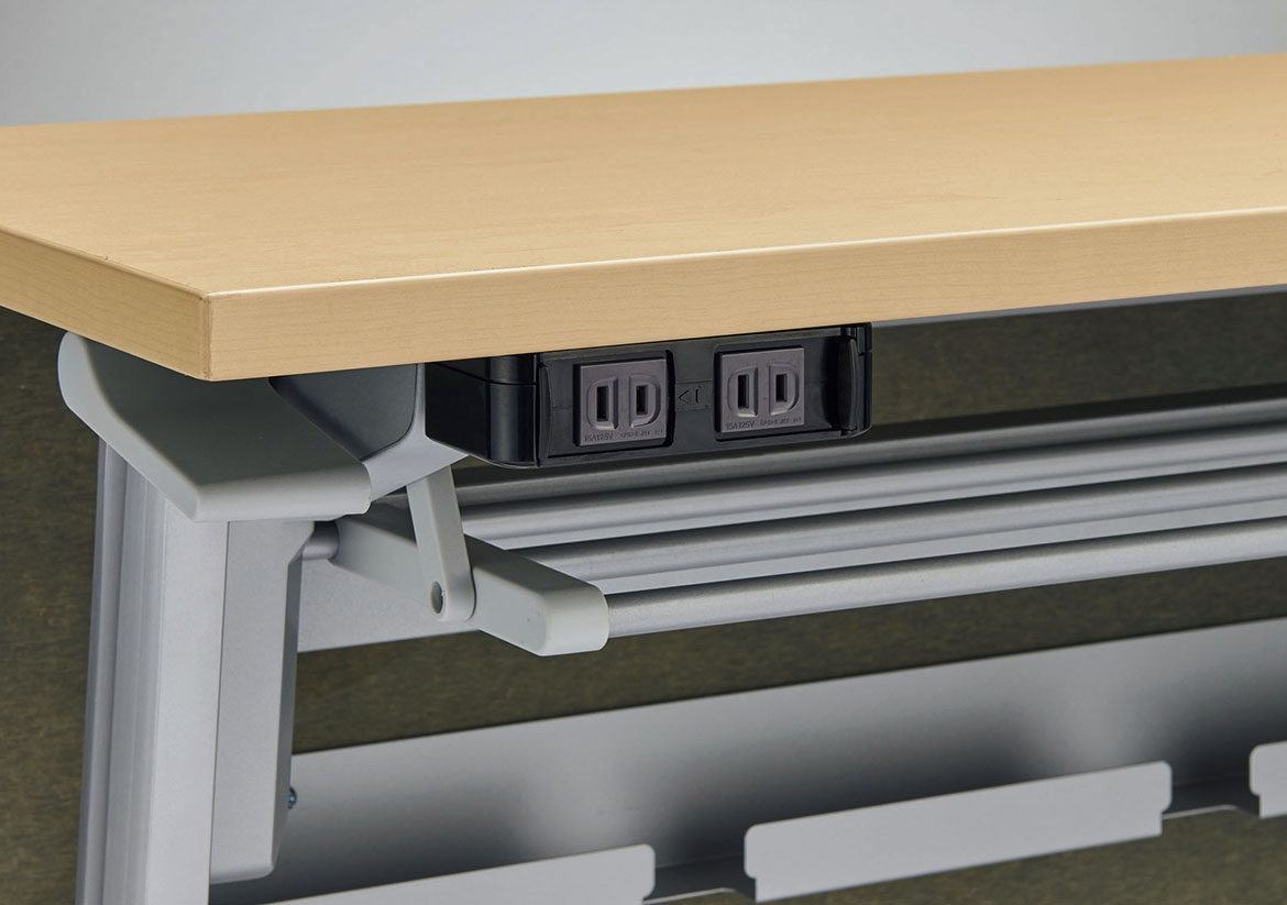 幕板の内側には配線トレーを備え、OAタップやHUBの収納に便利です。