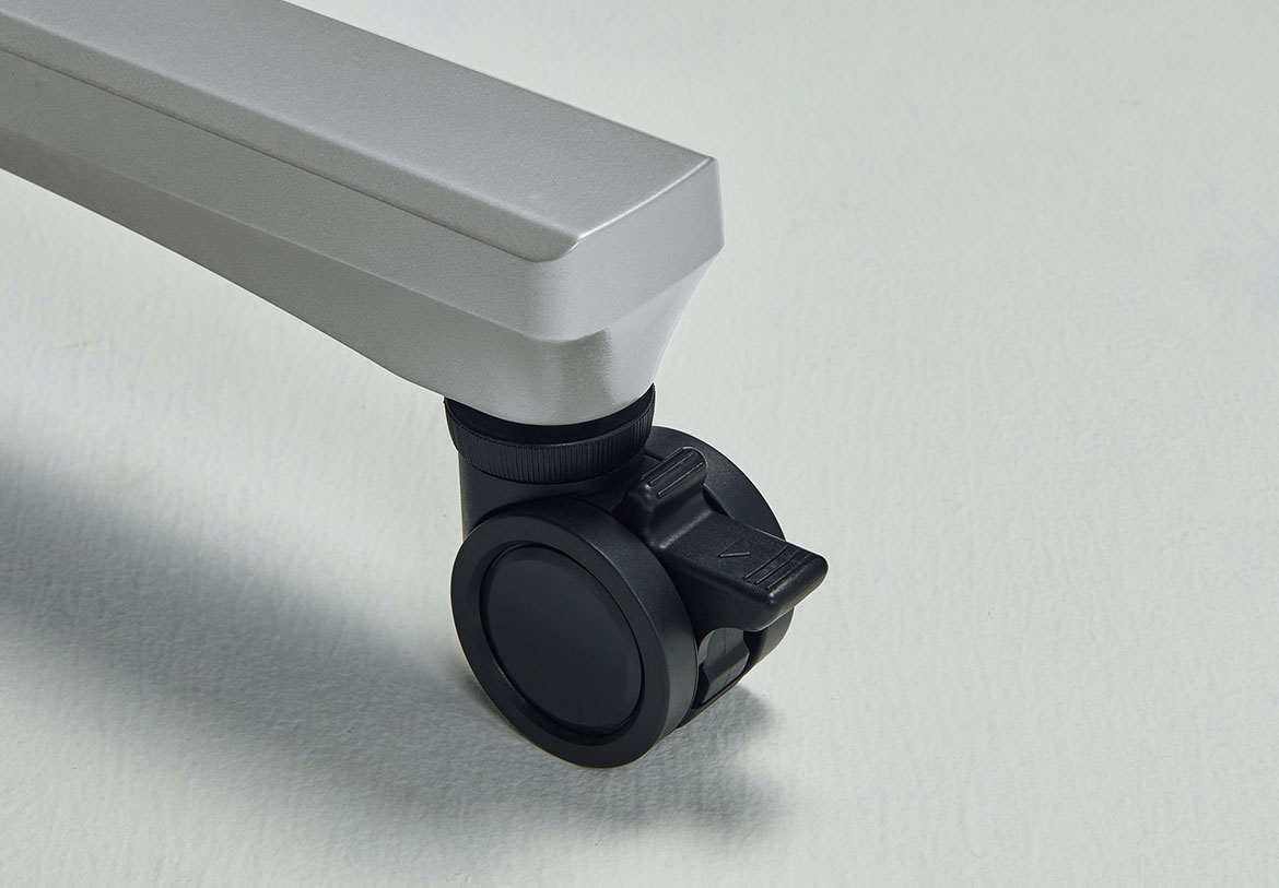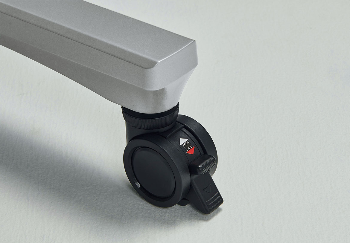 安全性の高いリフトロックキャスターを採用。ロック時にストッパーが床に接地し、確実に固定できます。