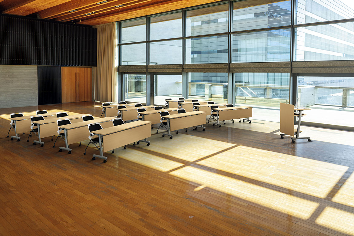 ナチュラル色で明るいながらも落ち着いた空間を演出。セミナールームのイメージを統一する講演台もラインアップ。