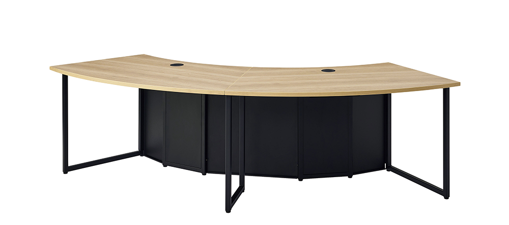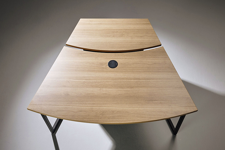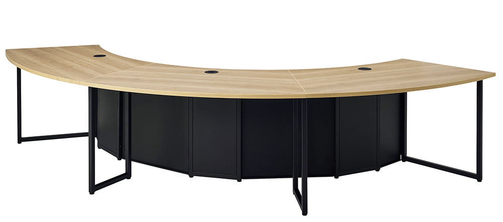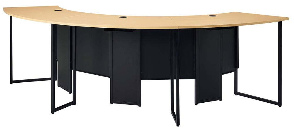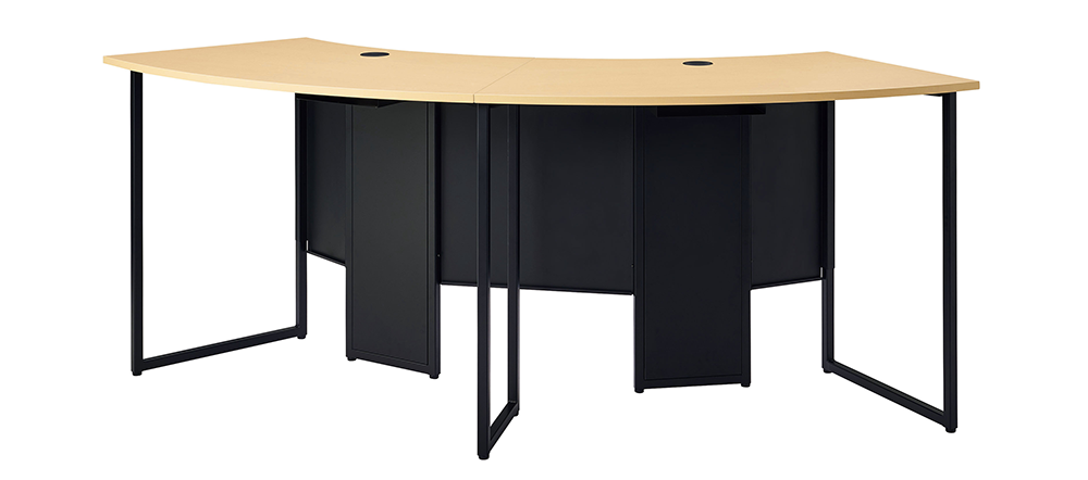 WEBカメラの画角に合わせた天板形状で、座席位置によらず全員が正面を向いた状態で映ることができます。