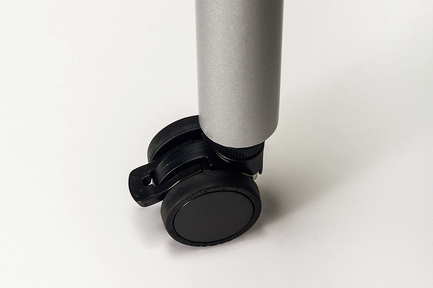 車輪の回転と旋回部(軸)の回転をロックし、安定した状態で使用できます。アジャスターも装備しており、高さ調整も可能です。