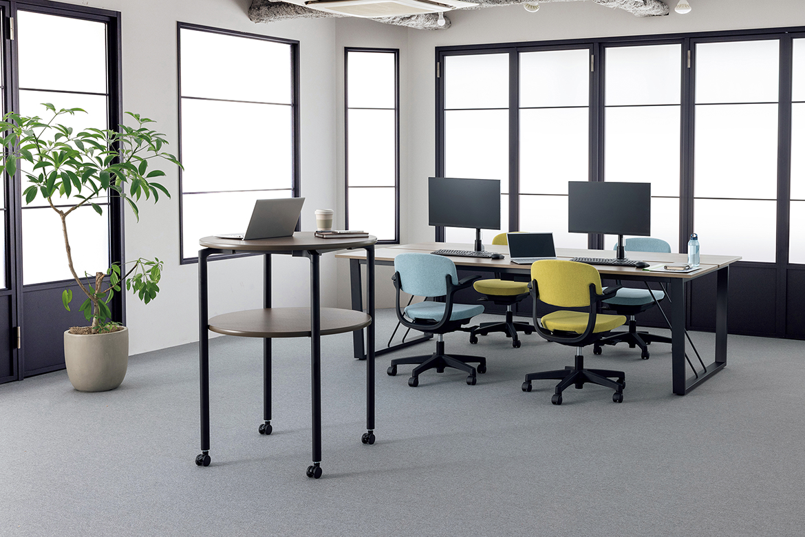 シルバーメタリックとブラックの2色の脚カラーから、使用シーンに合わせてお選びいただけます。