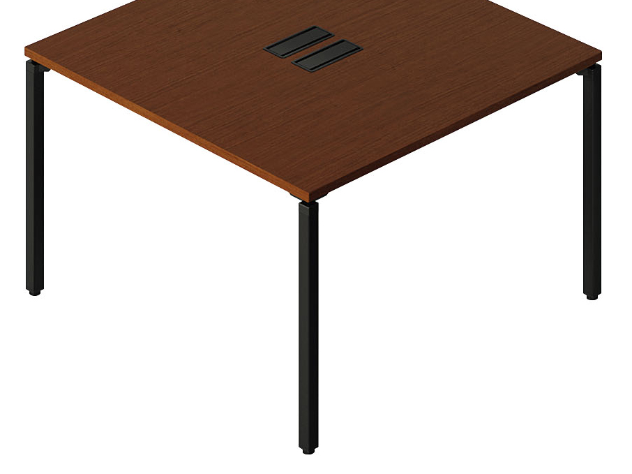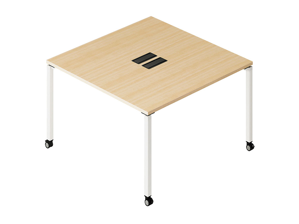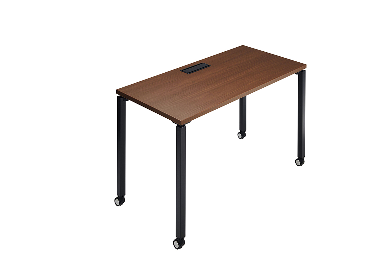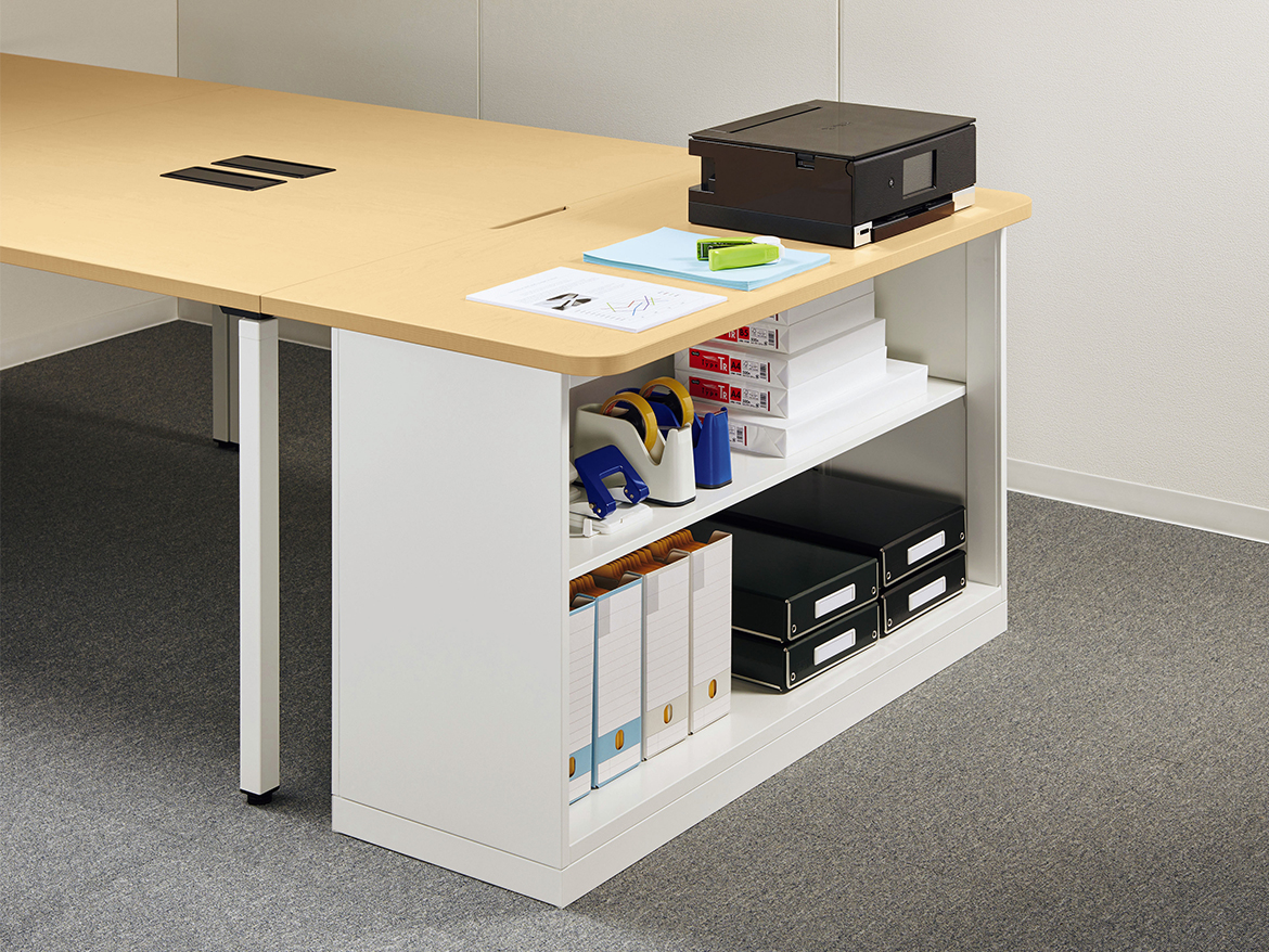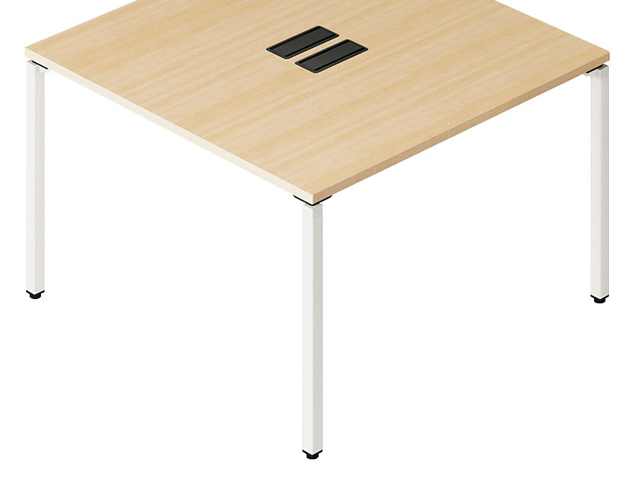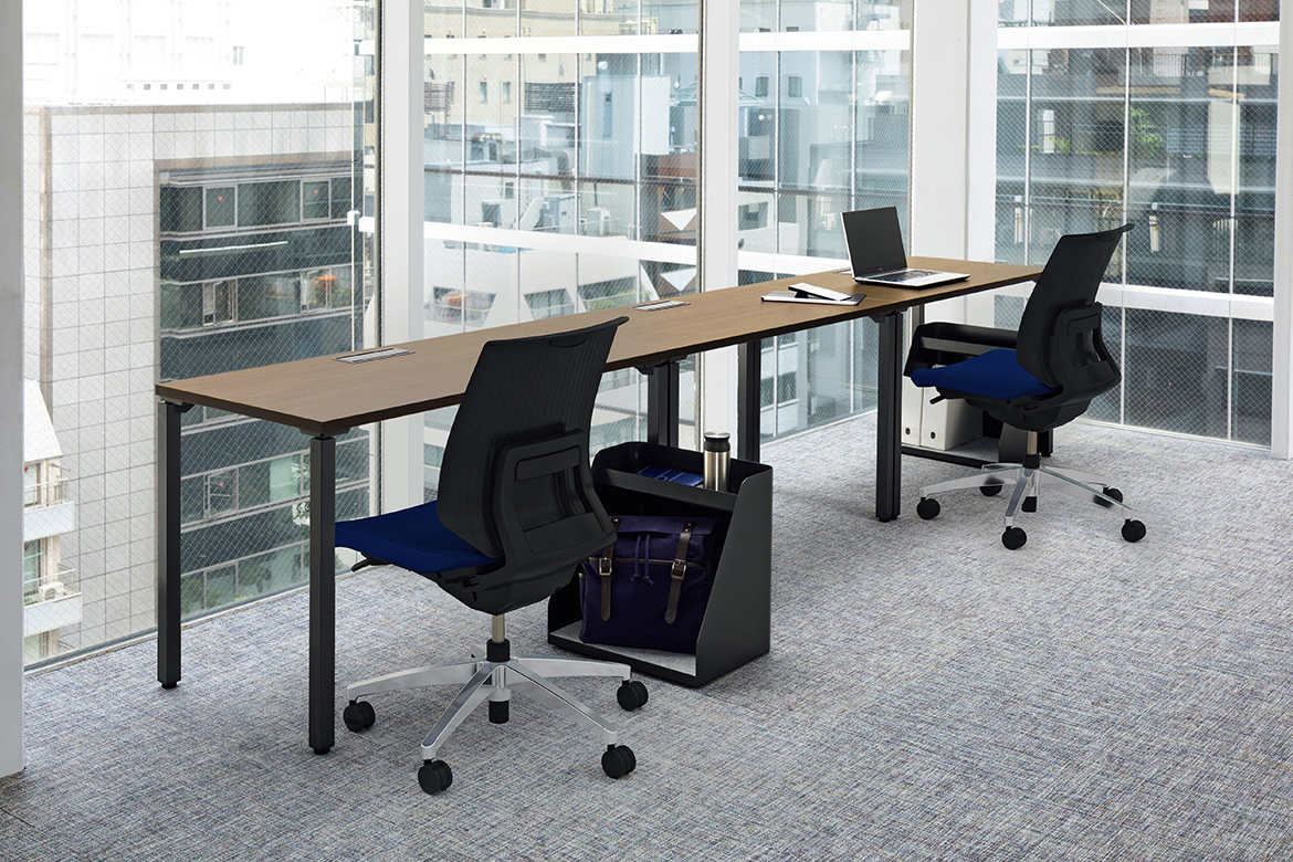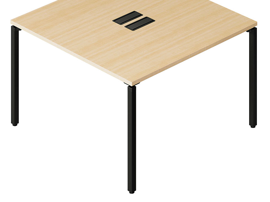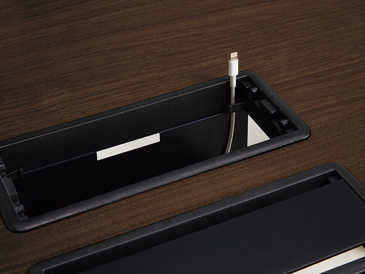床から机上面へ立ち上げ配線するのに便利。センター脚の内部から目立たずに配線できます。