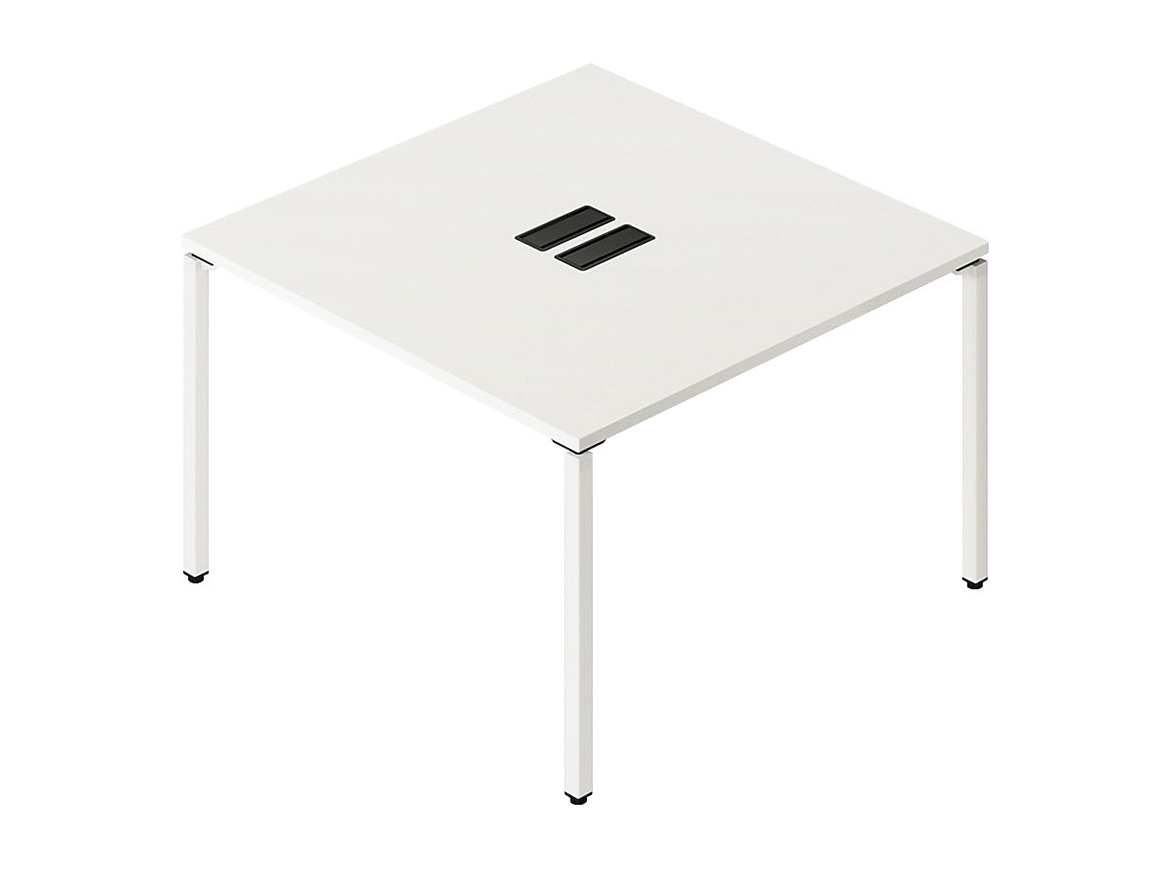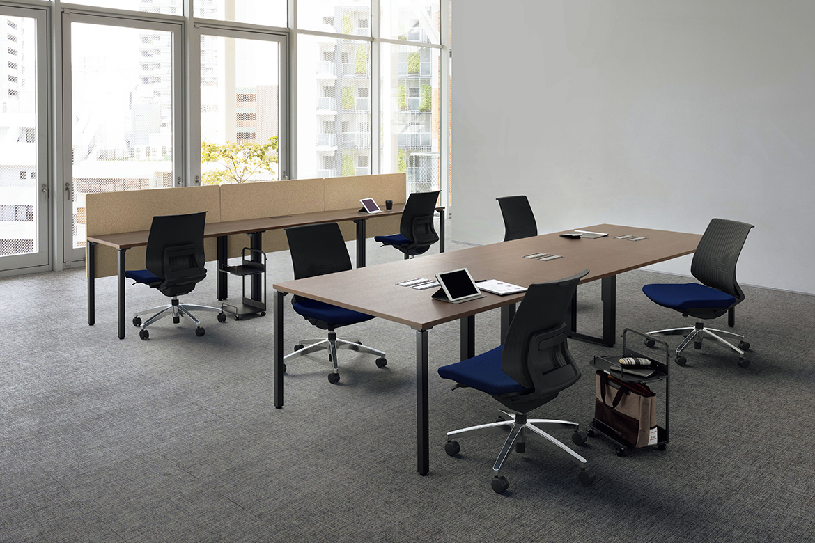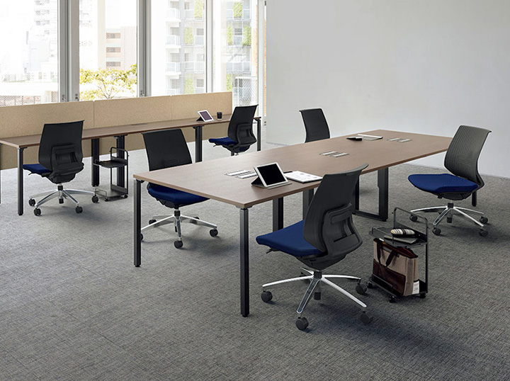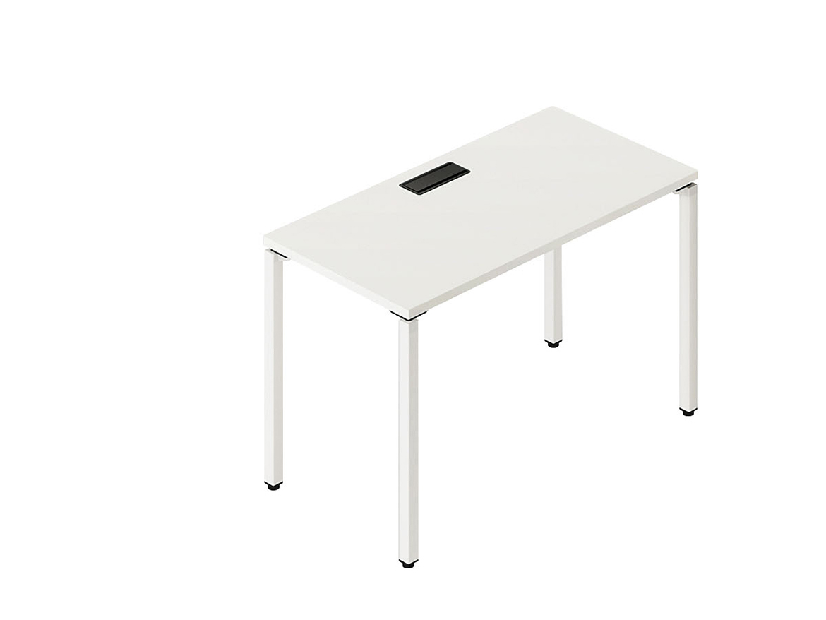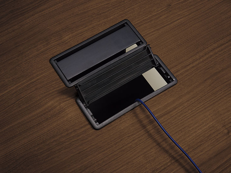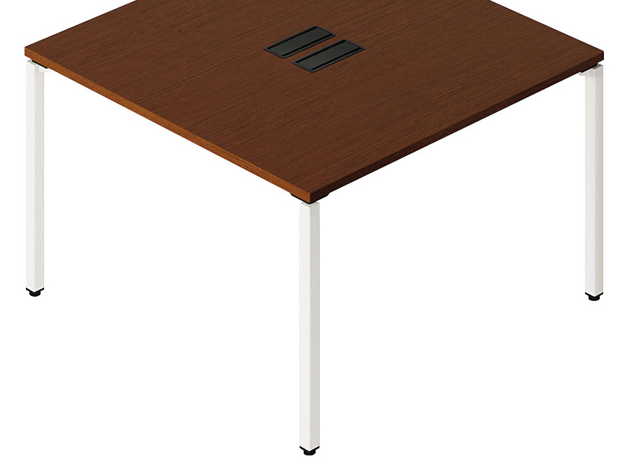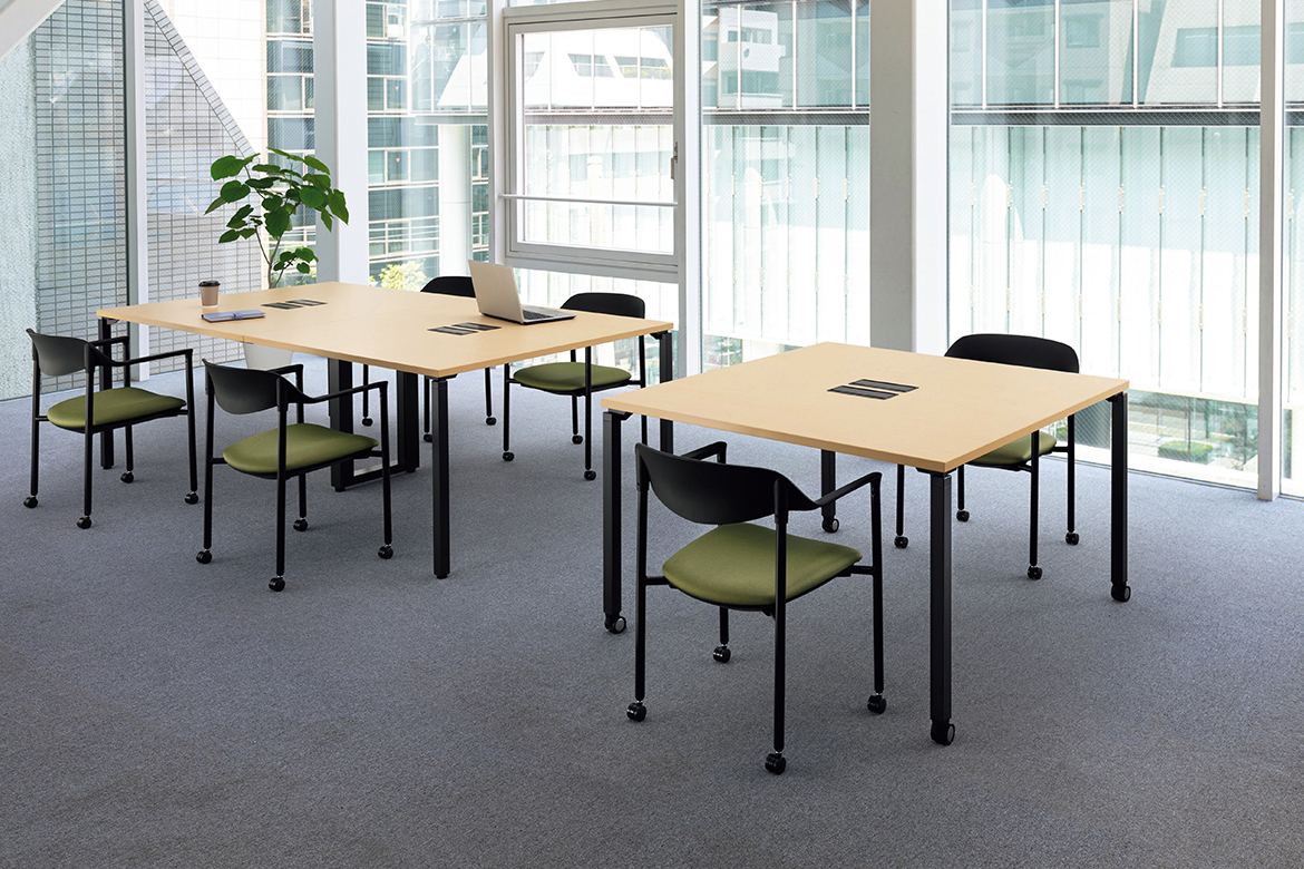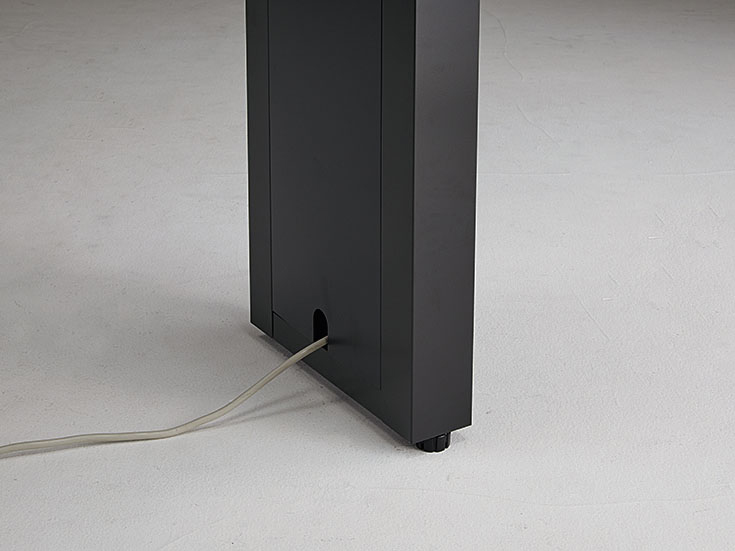 床から机上面へ立ち上げ配線するのに便利。センター脚の内部から目立たずに配線できます。