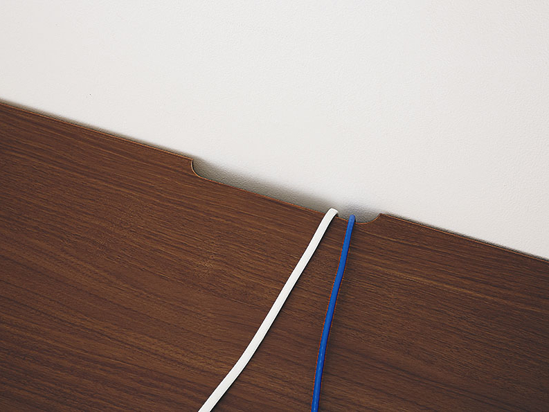 天板の裏側に配線フックを標準装備。ワンタッチで着脱でき、配線作業が容易に行えます。
