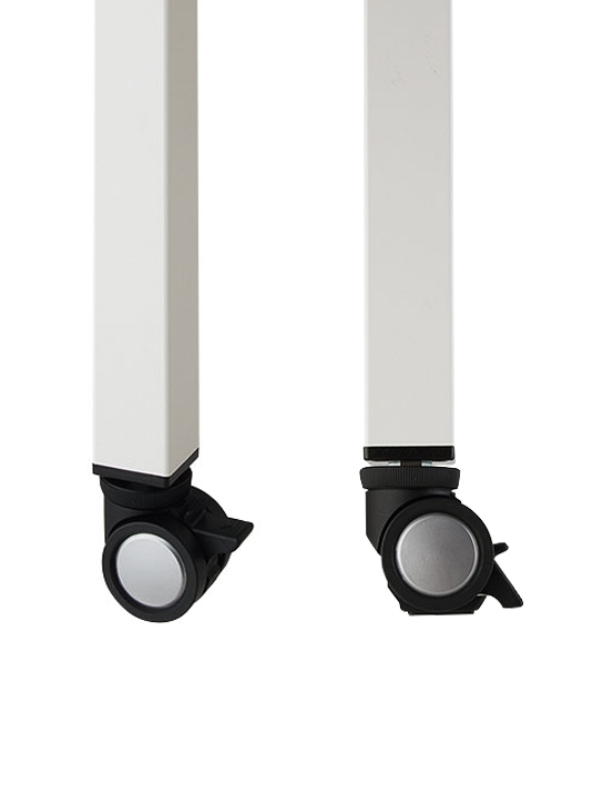 リフトロックキャスターを採用。ロック時にストッパーが床に接地し、確実に固定できます。キャスター上部のアジャスターで高さの微調整も可能です。