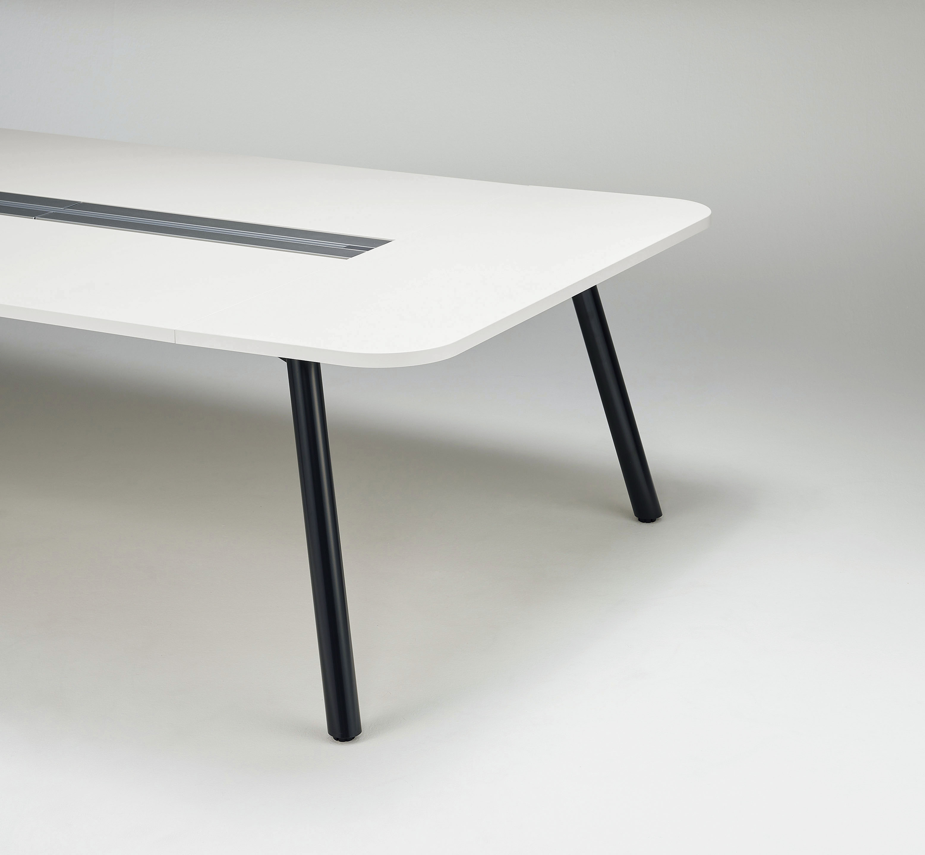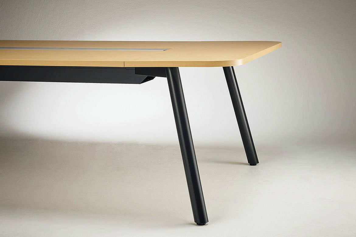 従来のラフィーノとは異なり、脚部に丸パイプを採用。ワークテーブルとして柔らかさと安心感を感じる仕様です。