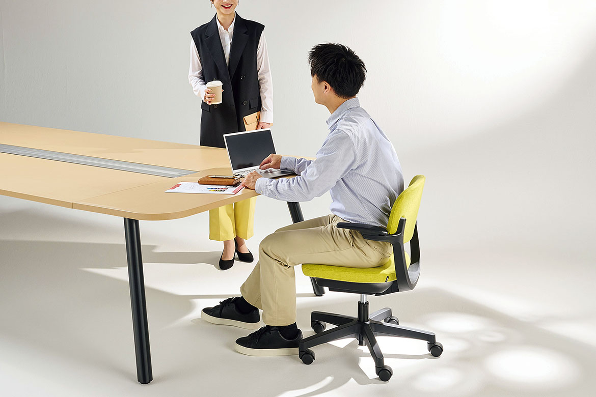 500㎜の角の大きく取った天板がついており、手軽なミーティングやソロワークスペースとしてもご使用いただけます。