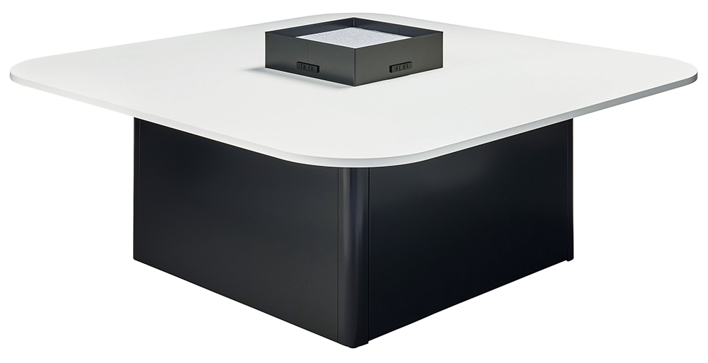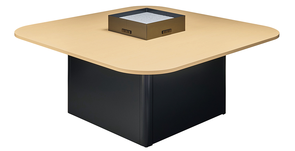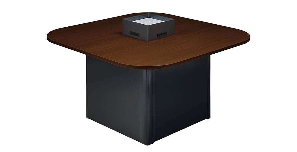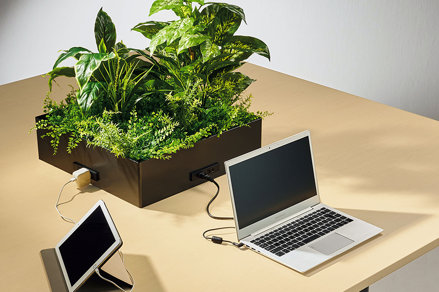 安定感をもたらす形状と、専用グリーンを用いた緑視化によりワーカーに安らぎを与え自然な会話を促します。電源があることでPCを用いた打ち合わせにも適しています。
